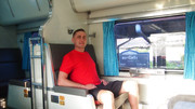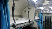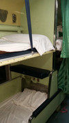 Wagony czyste i idealnie wysprzątane, tym razem innym się podobało, ale mnie przeszkadzał system klimatyzacji zrealizowany za pomocą silnika spalinowego zamontowanego pod spodem. Przez co wagon buczy i nie słychać odgłosów wózków i toru. Z powodu klimatyzacji okna nie są otwierane. Dla kolejowych wrażeń polecam te starsze wagony dla wygody nowsze. Podobnie jak w poprzednim wagonie, siedzenia z dermy w dzień złożone tworzą normalne fotele a o pewnej porze konduktor rozkłada je do pozycji leżącej i przynosi świężą pościel. Nie ma przedziałów, łóżka są wzdłuż ale każdy ma zasłonkę więc można się zasłonić i ma się większą prywatność niż w polskiej kuszetce.