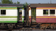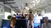 Na pierwszym zdjęciu widać, że dla pociągu osobowego z wagonami 3 klasy zabrakło wolnego toru przy peronie. Wsiadamy zatem z podsypki, emeryci czy matki z dziećmi raczej nie będą zadowoleni... W tym samym pociągu jak widać mamy niezły punkt obserwacyjny dla miłośnika kolei na końcu gdyż nie ma drzwi. Łączenia międzywagonowe to klasyczna harmonijka. Wagony 3 klasy przypominają raczej te spotykane u nas w Chabówce lub Wolsztynie. Zazwyczaj są w malowaniu biało brązowym a wśrodku są siedzenia wykończone zieloną czasem niebieską dermą. To najpopularniejszy wagon. Jeździ na pociągach osobowych, a także pospiesznych, również nocnych, które mają w składzie kilka sypialnych ale większość to właśnie 3 klasa siedząca. Miałem okazję przejechać się tym wagonem na dwugodzinnym odcinku.
